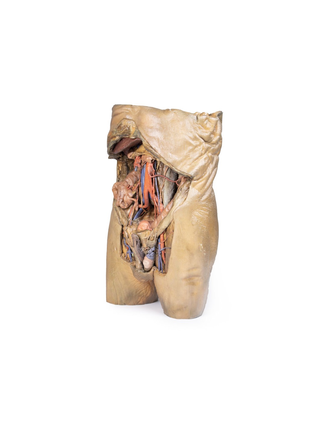 Dieses Modell eines Abdomens mit beidseitigen Hernien ist Teil der exklusiven Monash 3D-Anatomie-Serie, einer umfassenden Serie menschlicher Präparate, die im 3D-Vollfarbdruck mit sehr hoher Auflösung reproduziert werden.