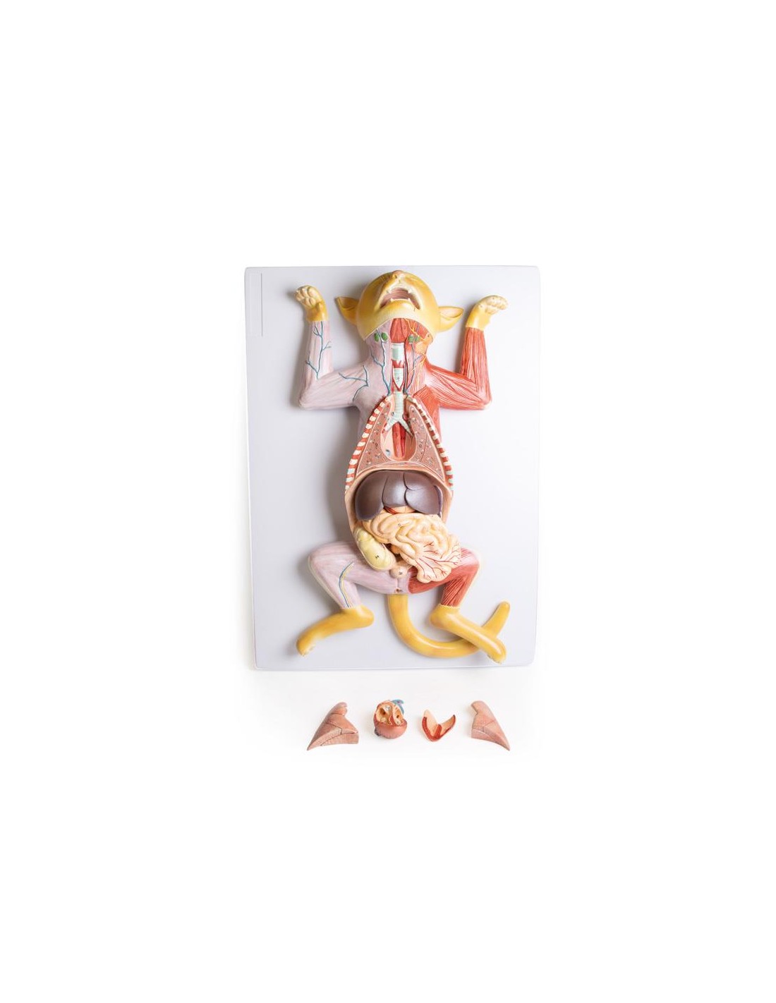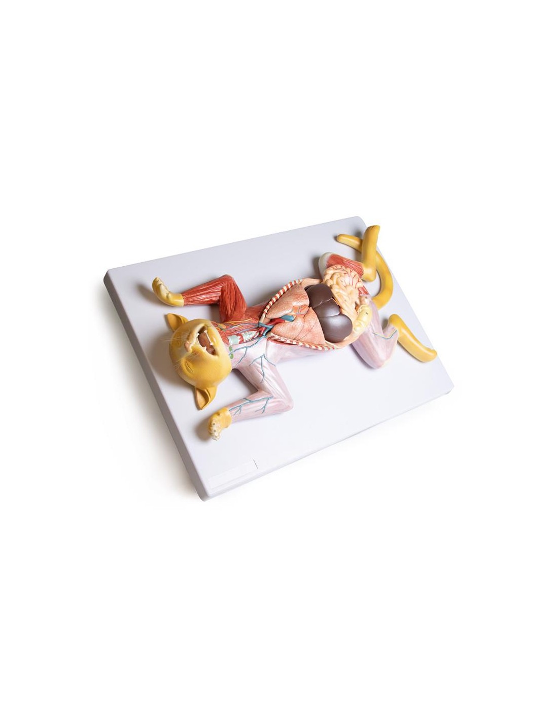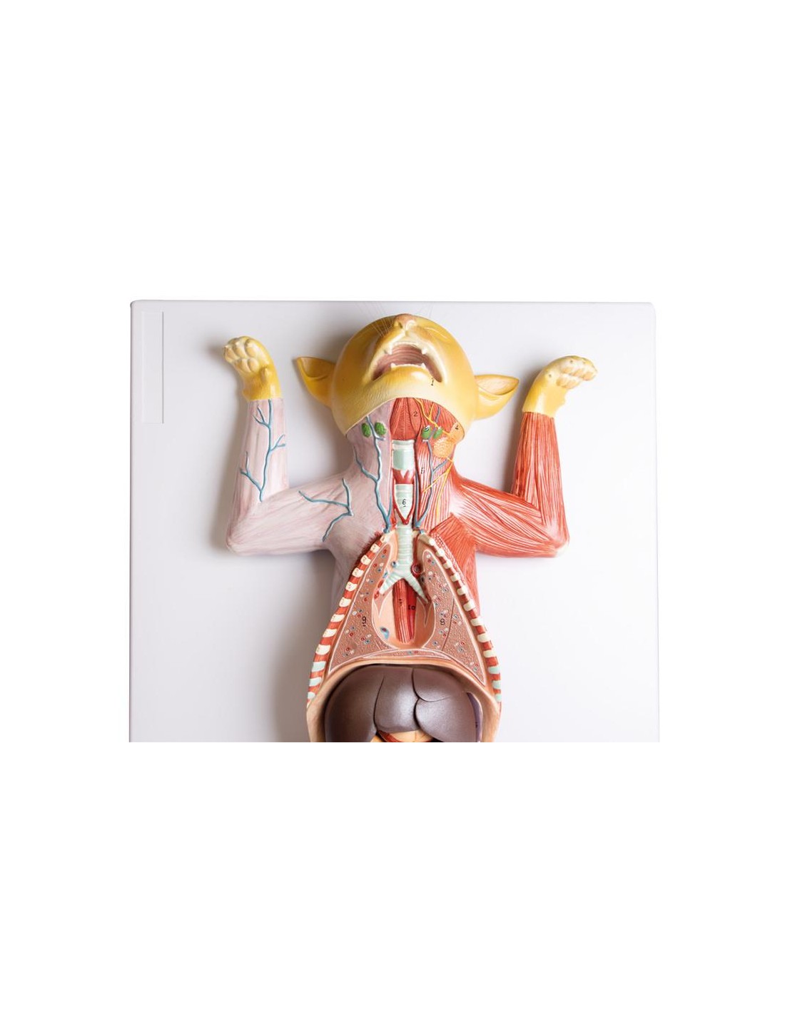 Dieses gehäutete Katzenmodell ist eine hervorragende Ergänzung zur praktischen Präparation und ermöglicht eine einfache Visualisierung der oberflächlichen Muskulatur.