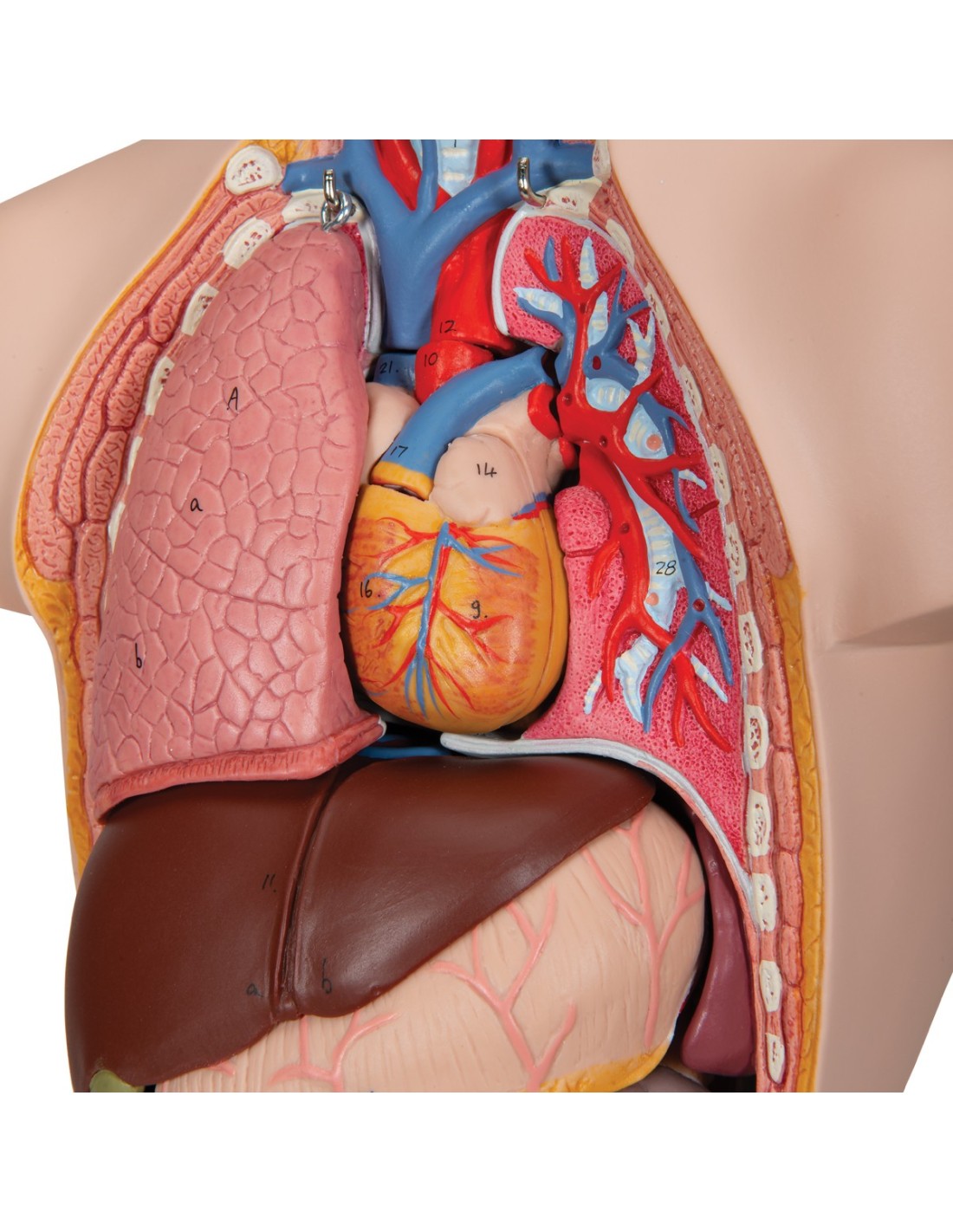 Dieses außergewöhnliche Modell eines zerlegbaren Torsos ist etwa halb so groß wie ein lebensgroßes Modell. Selbst kleine Hände sind in der Lage, ihn schnell zu zerlegen in: