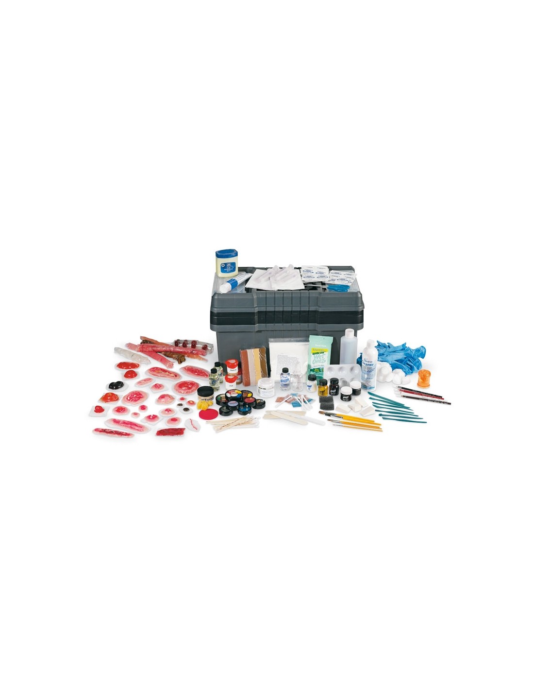 Included are simulated wounds, makeup, and makeup accessories, all packaged in a hard case.