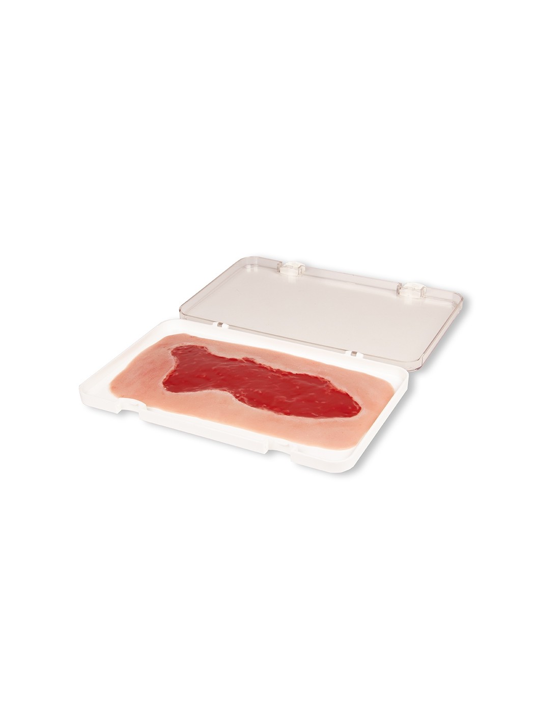 The Erler Zimmer PW003B Wide, Granulating Lower Limb Venous Ulcer Wound Moulage is a nursing manikin For laboratory practice of nursing techniques.