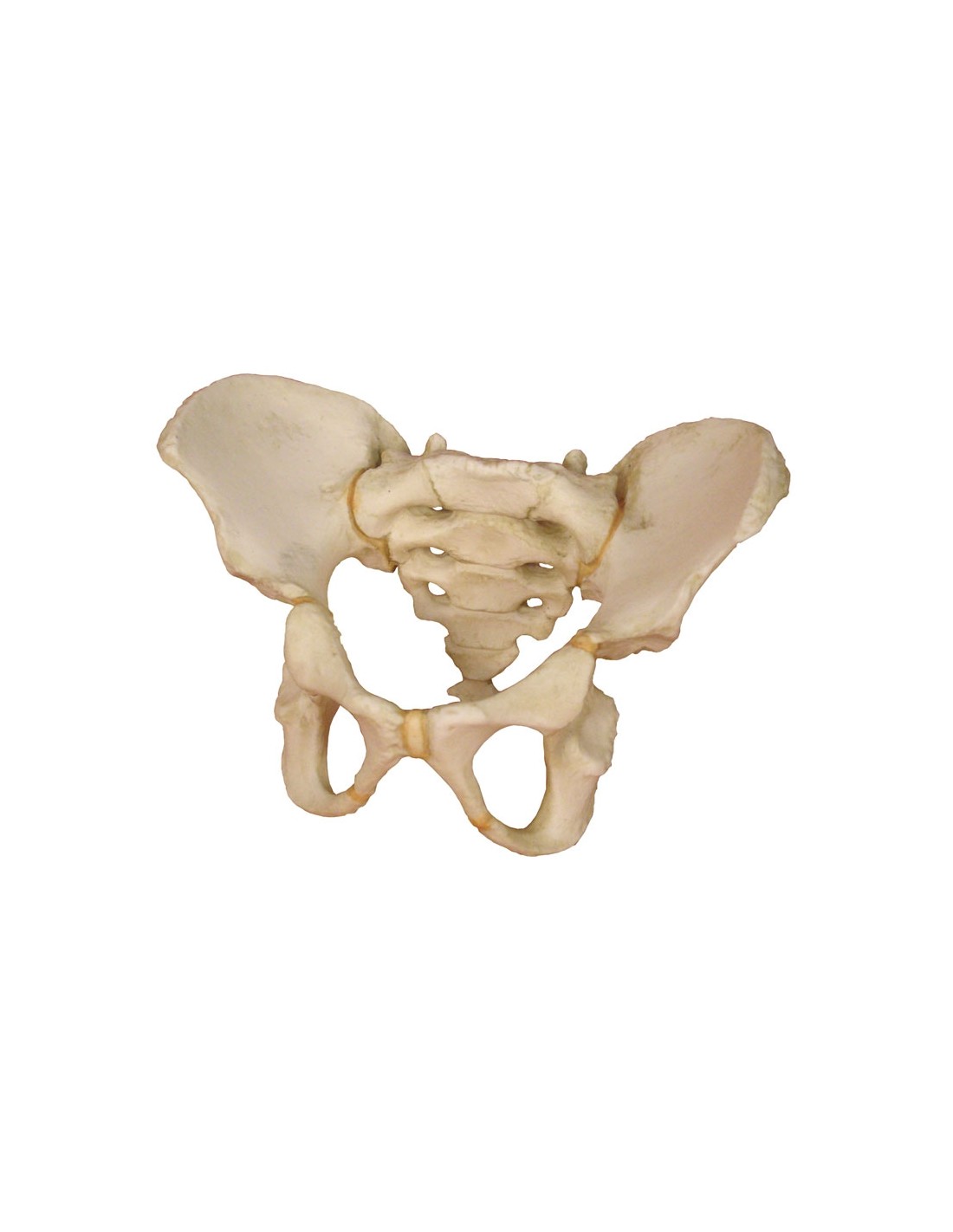 The anatomical model of a 5-year-old child's pelvic skeleton 4051 is made of polyvinyl chloride (PVC), which is very hard, lightweight, and corrosion-resistant. PVC resists reactions with acids, alcohol gasoline, and hydrocarbons.