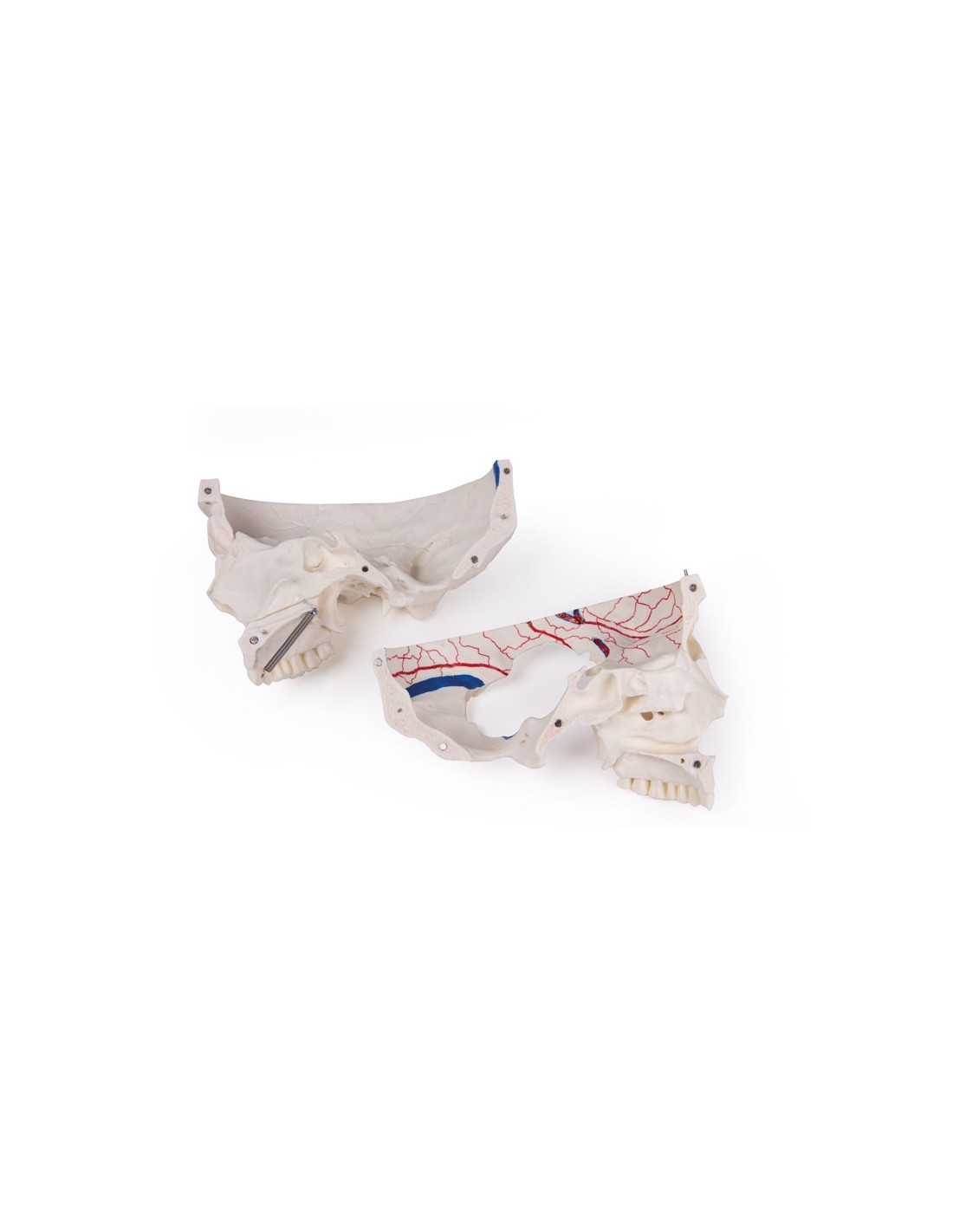 El maxilar y la mandíbula exponen las estructuras de la dentición, son visibles las raíces, el margen óseo del proceso alveolar, los vasos dentales y los nervios. El seno maxilar puede abrirse retirando un colgajo óseo.