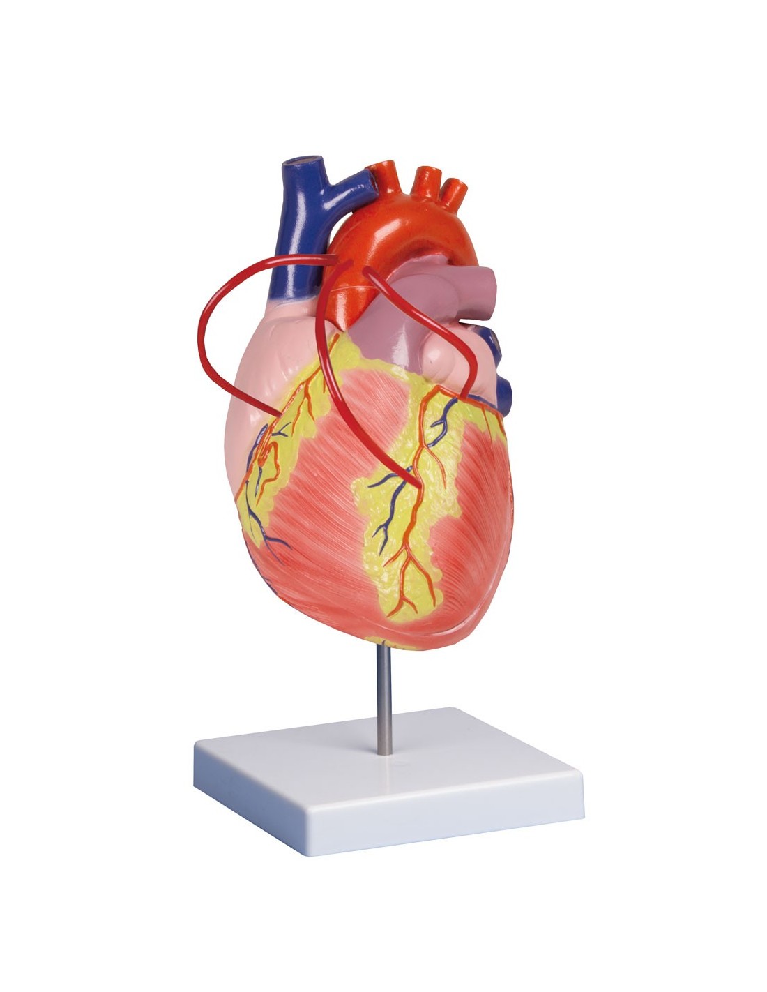 Le modèle de cœur deux fois plus grand que le modèle pédagogique décrit en détail toutes les structures les plus importantes du cœur humain.