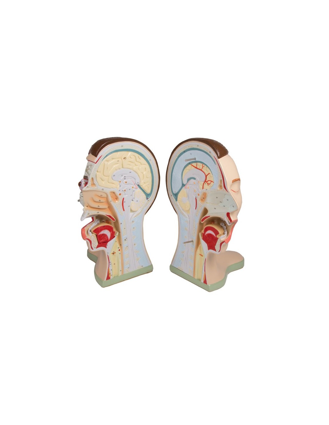 Ce modèle anatomique didactique extraordinaire d'une tête humaine en coupe médiane et frontale peut être utilisé pour visualiser les structures internes.