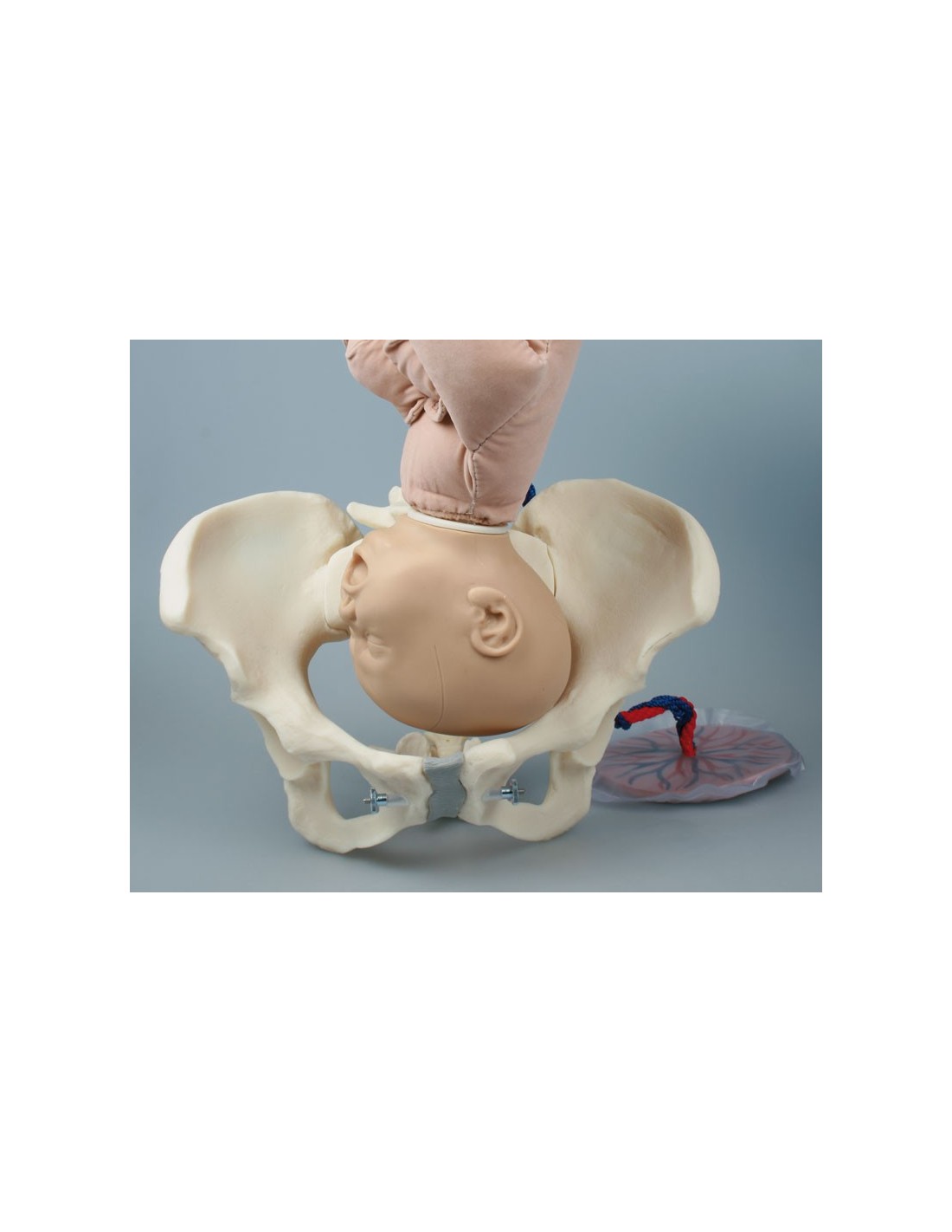 La pelvi femminile di questo modello anatomico è una riproduzione in stampa 3D ad alta risoluzione originata da un calco naturale, il manichino del feto è stato realizzato in stoffa con la testa in plastica.